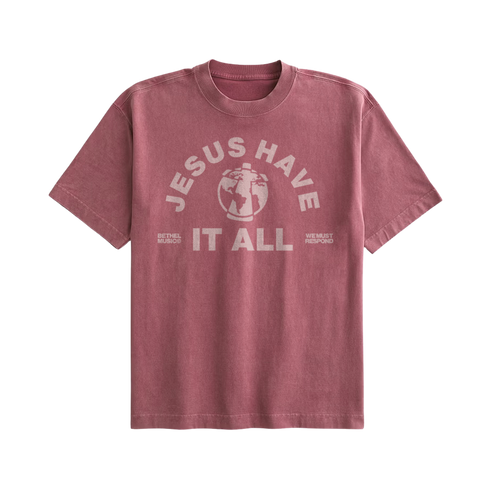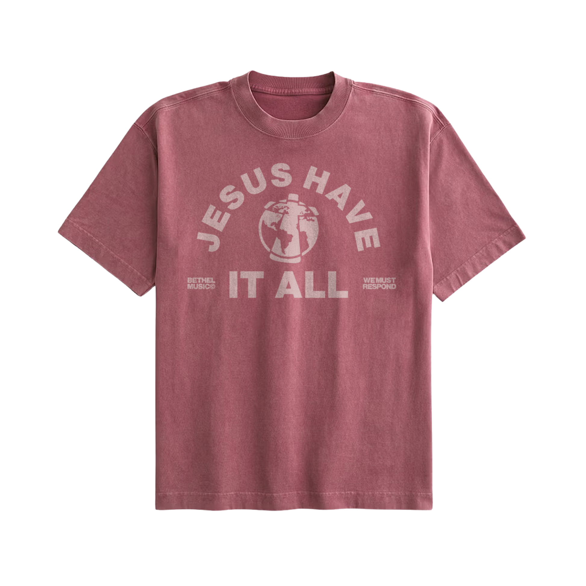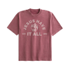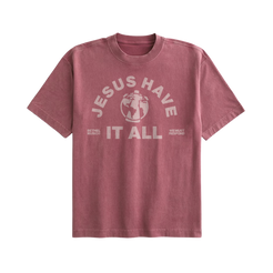 Jesus Have It All tee in washed maroon has a boxy vintage style feel.